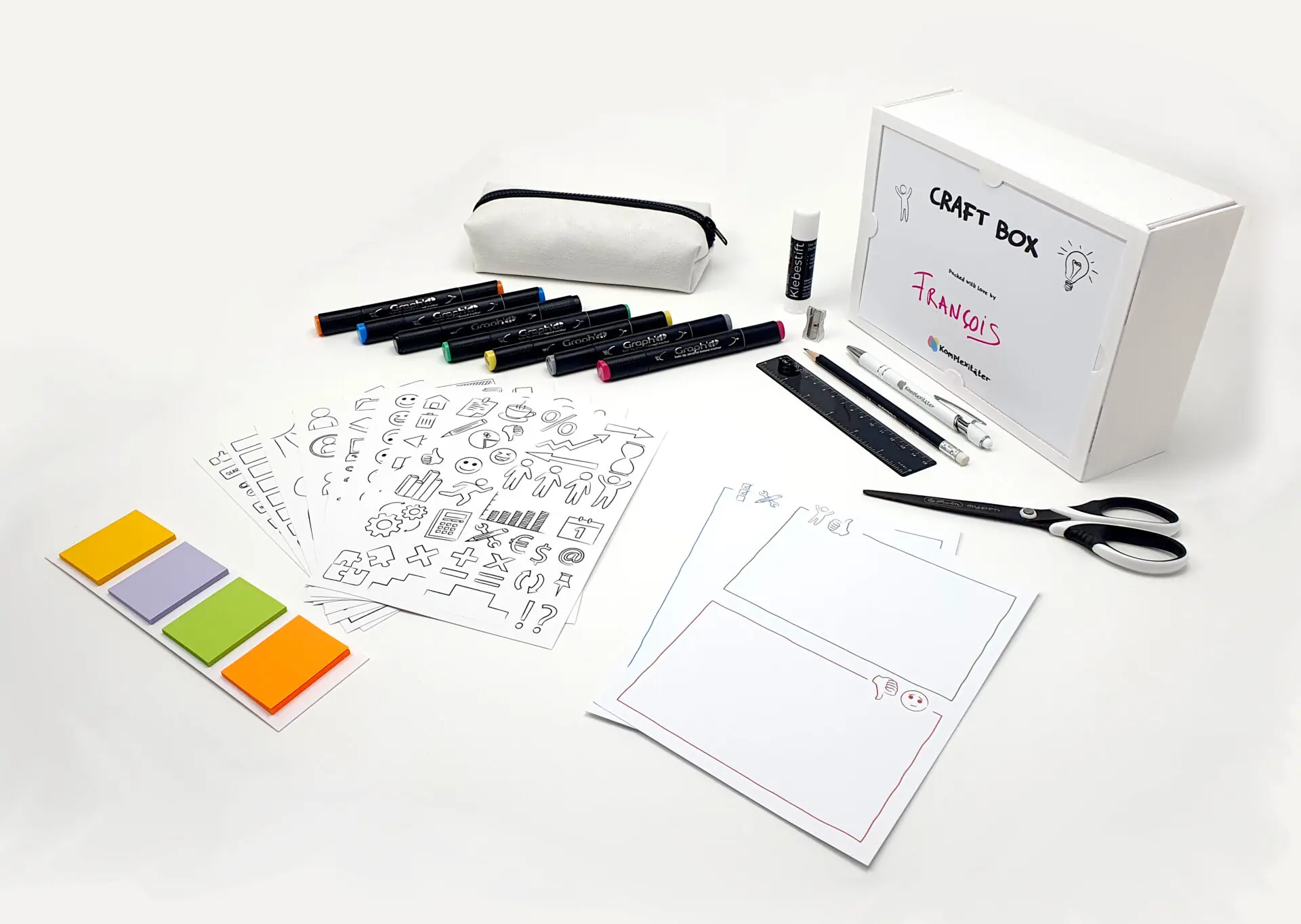 - Teile die Anzahl deiner Teilnehmer gedanklich in Teams von 4-6 Teilnehmer und bestelle eine Craft Box je Team.